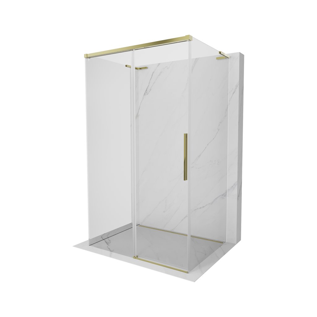 Mexen Rox-3SL, 3-stěnný výsuvný sprchový kout 145 x 100 cm, čiré sklo, zlatý profil, 8C2L-145-100-50-00-3S