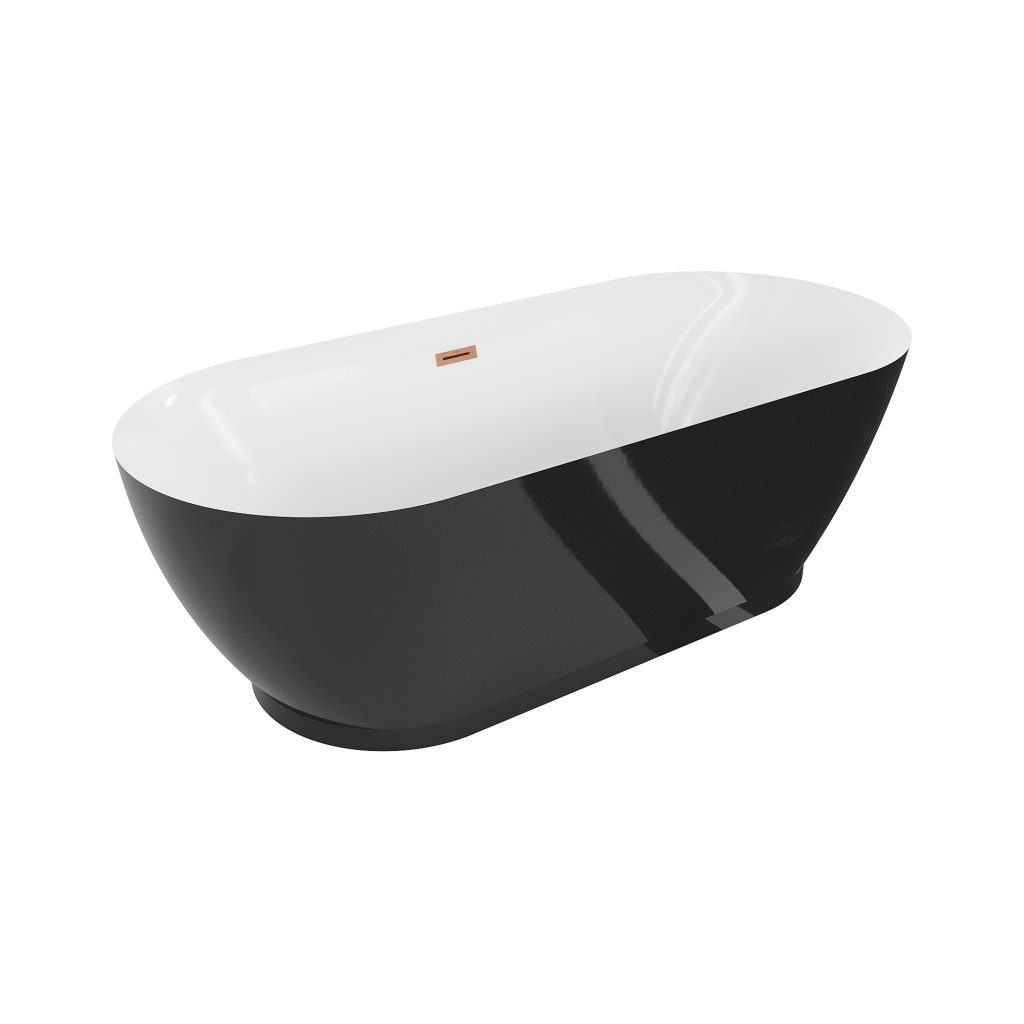 Mexen Roxy, volně stojící vana 180 x 85 cm, bílá-černá, měděný matný přepad, 51201808575-65