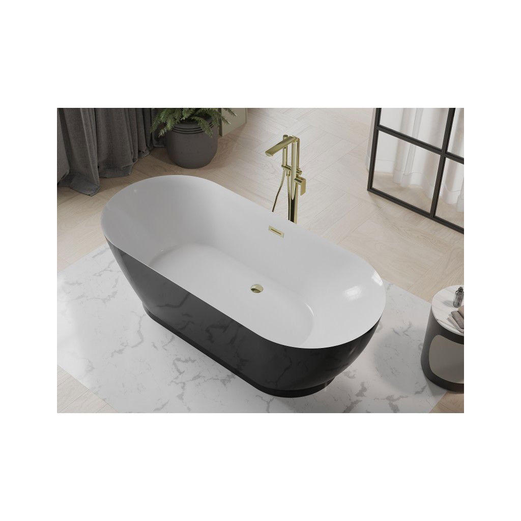 Mexen Roxy, volně stojící vana 180 x 85 cm, bílá-černá, zlatý lesklý přepad, 51201808575-50