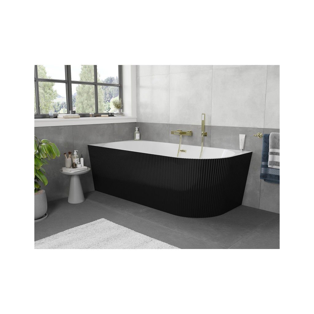 Mexen Silo, rohová volně stojící rýhovaná vana, levá, 150 x 75 cm, bílá-černá, zlatý matný přepad, 52891507575L-55