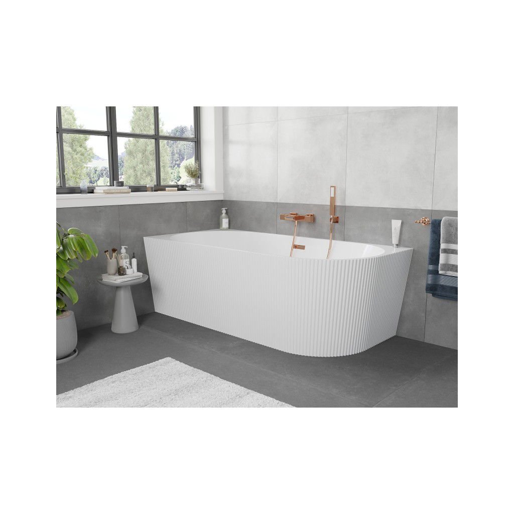 Mexen Silo, rohová volně stojící rýhovaná vana, levá, 150 x 75 cm, bílá lesklá, růžové zlato přepad, 52891507500L-60