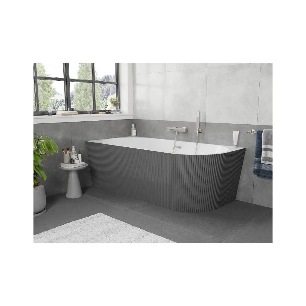 Mexen Silo, rohová volně stojící rýhovaná vana, levá, 150 x 75 cm, bílá-šedá, ocelový přepad, 52891507562L-97