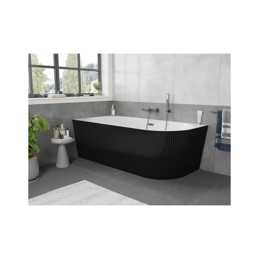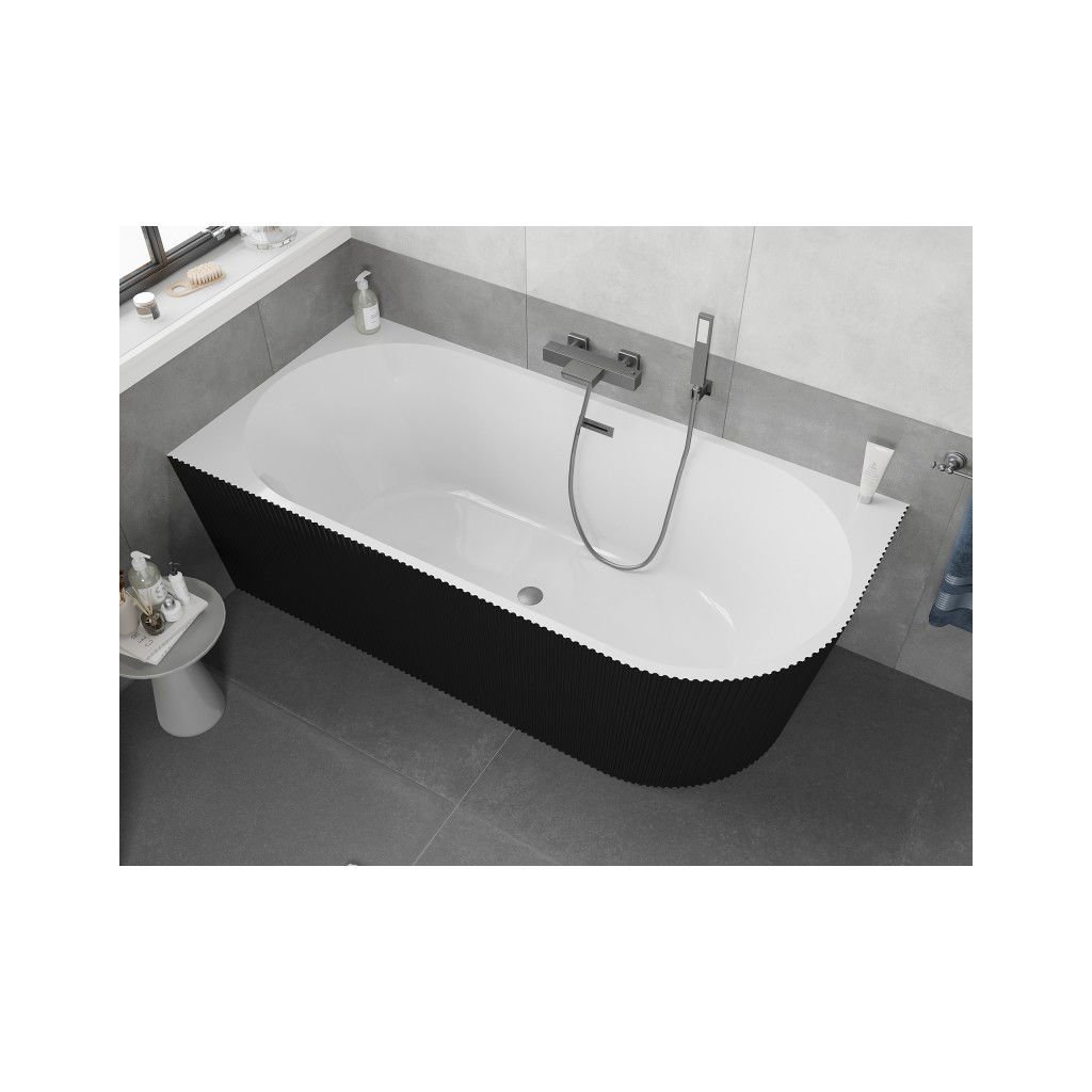 Mexen Silo, rohová volně stojící rýhovaná vana, levá, 170 x 80 cm, bílá-černá, broušený grafit přepad, 52891708075L-66