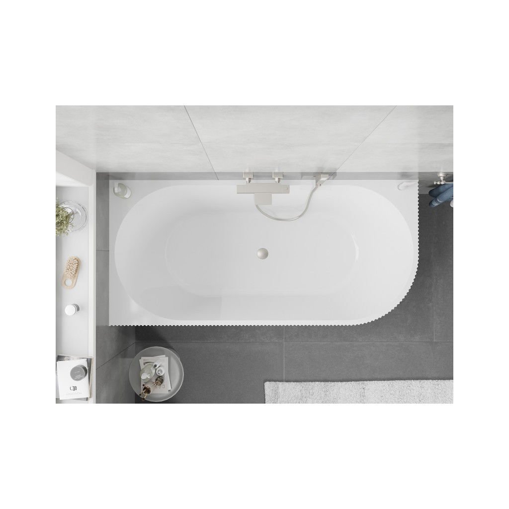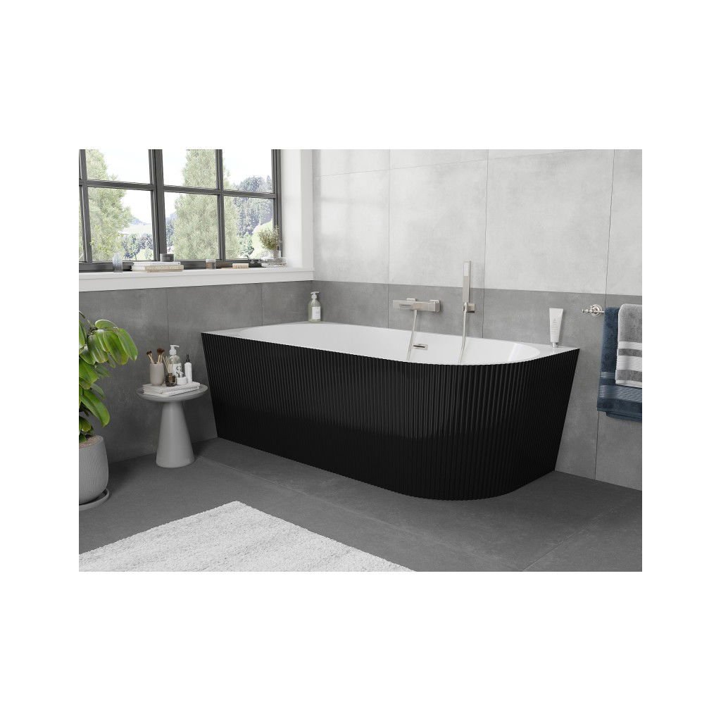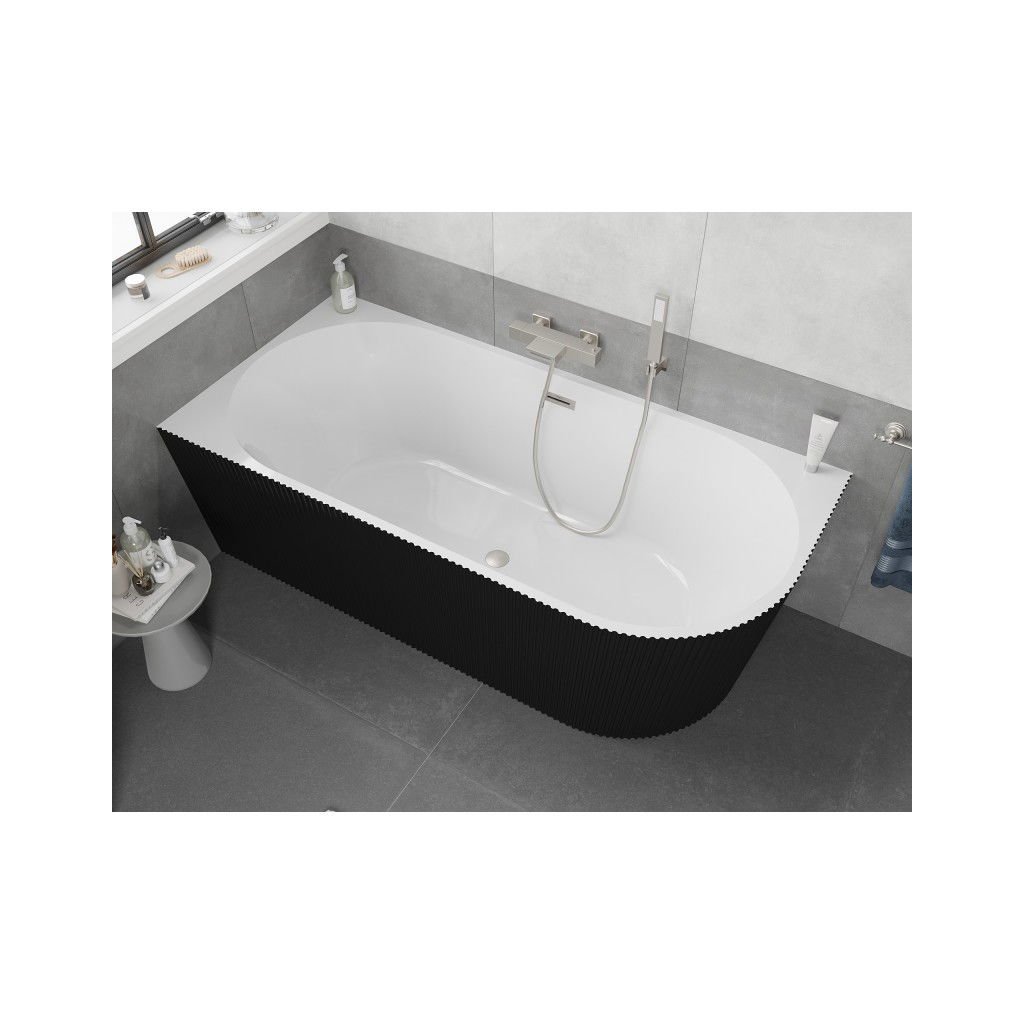 Mexen Silo, rohová volně stojící rýhovaná vana, levá, 170 x 80 cm, bílá-černá, ocelový přepad, 52891708075L-97