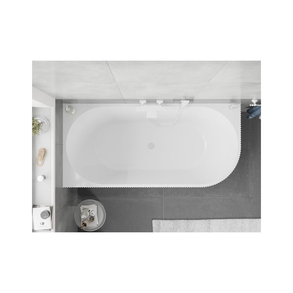 Mexen Silo, rohová volně stojící rýhovaná vana, levá, 170 x 80 cm, bílá lesklá, bílý přepad, 52891708000L-20