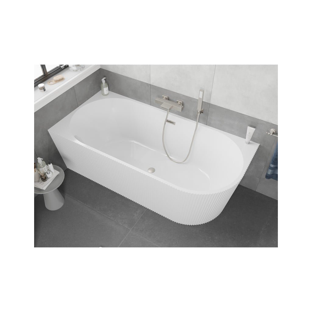 Mexen Silo, rohová volně stojící rýhovaná vana, levá, 170 x 80 cm, bílá lesklá, ocelový přepad, 52891708000L-97