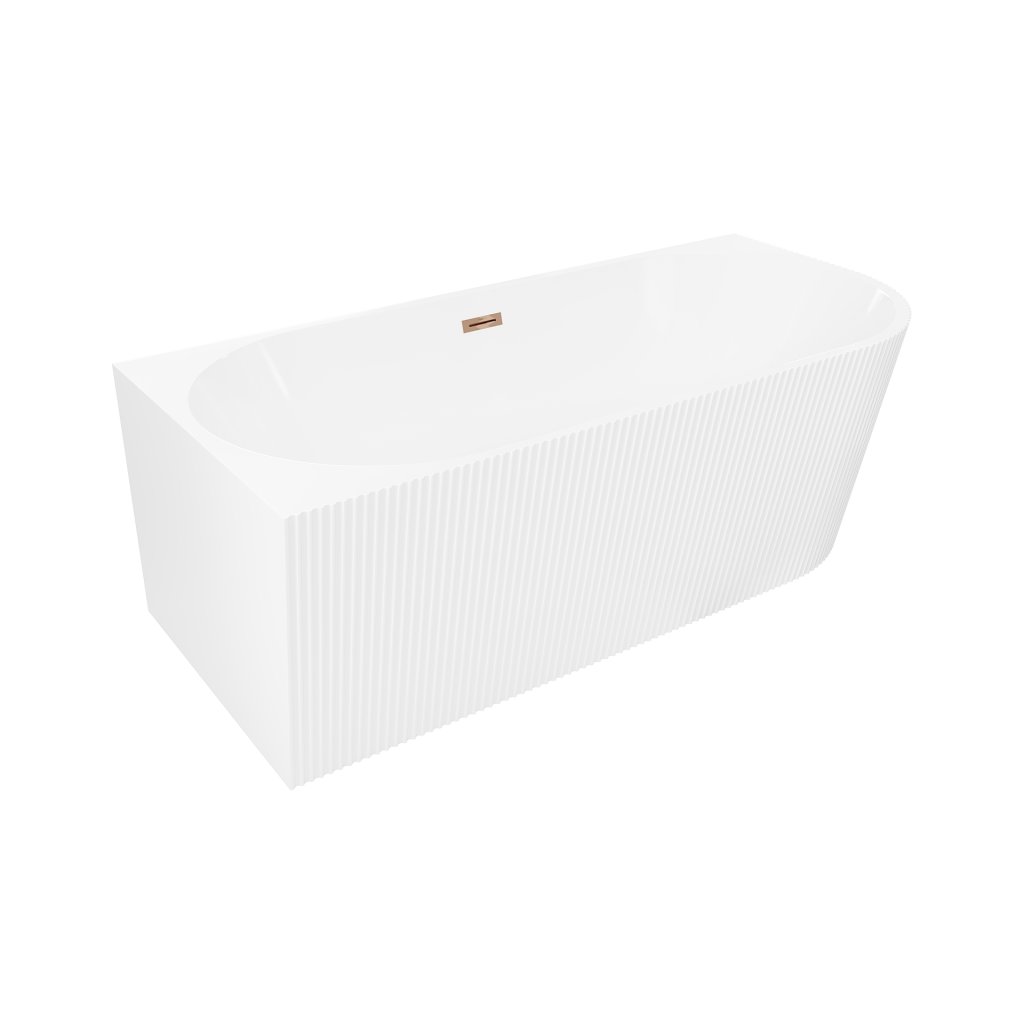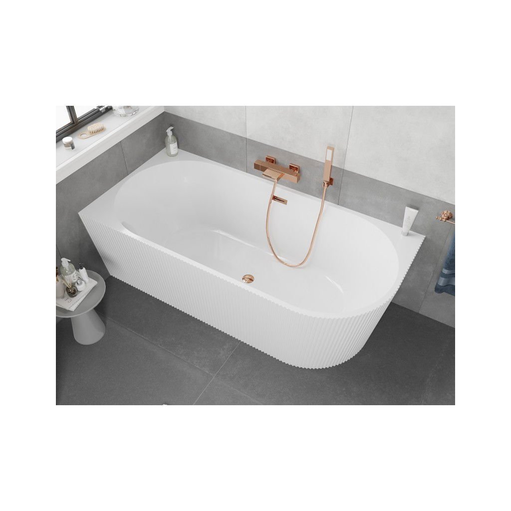 Mexen Silo, rohová volně stojící rýhovaná vana, levá, 170 x 80 cm, bílá lesklá, růžové zlato přepad, 52891708000L-60