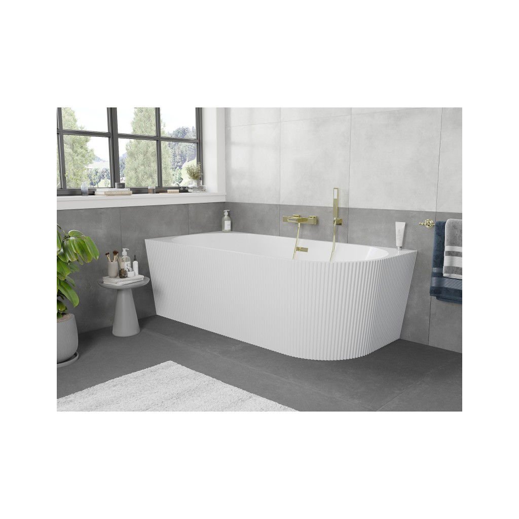 Mexen Silo, rohová volně stojící rýhovaná vana, levá, 170 x 80 cm, bílá lesklá, zlatý lesklý přepad, 52891708000L-50