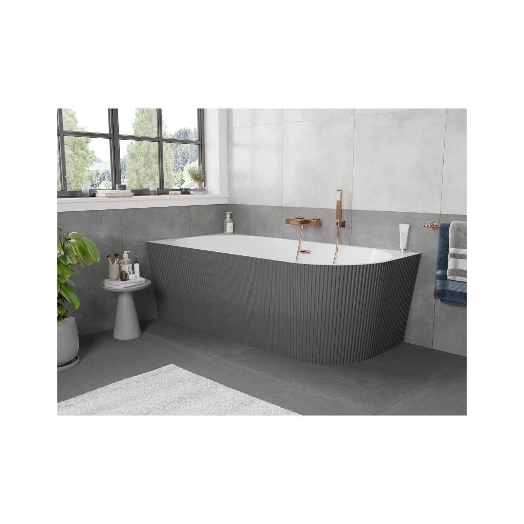 Mexen Silo, rohová volně stojící rýhovaná vana, levá, 170 x 80 cm, bílá-šedá, měděný matný přepad, 52891708062L-65