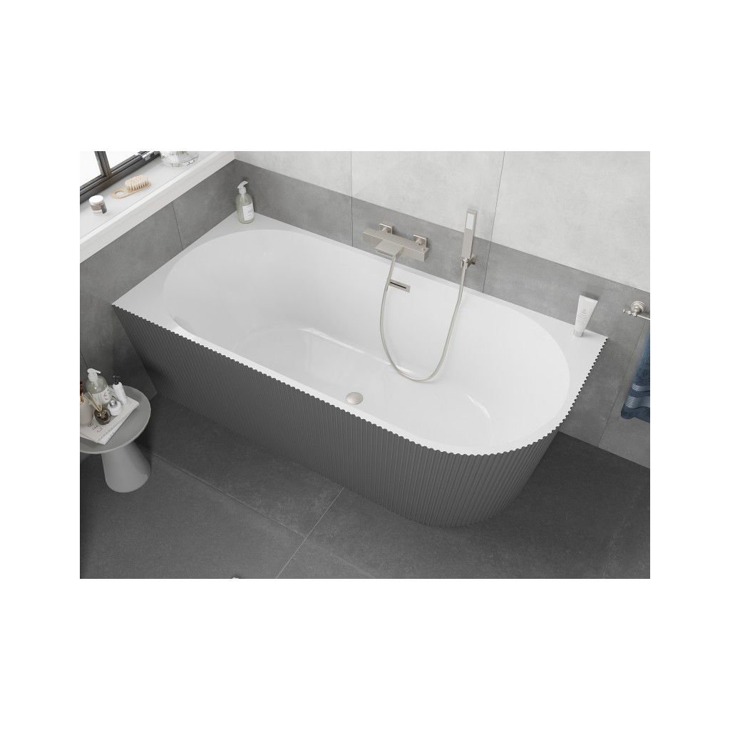 Mexen Silo, rohová volně stojící rýhovaná vana, levá, 170 x 80 cm, bílá-šedá, ocelový přepad, 52891708062L-97