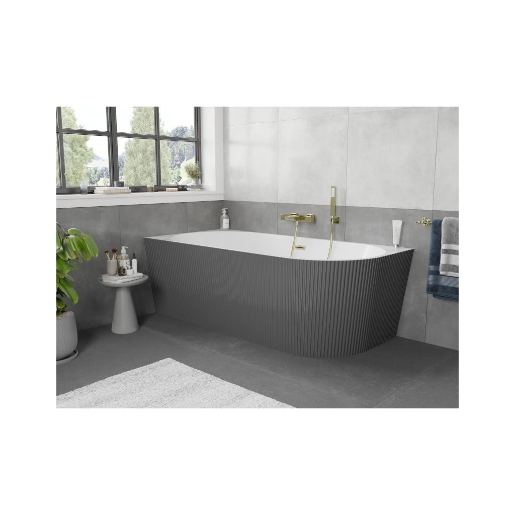 Mexen Silo, rohová volně stojící rýhovaná vana, levá, 170 x 80 cm, bílá-šedá, zlatý matný přepad, 52891708062L-55
