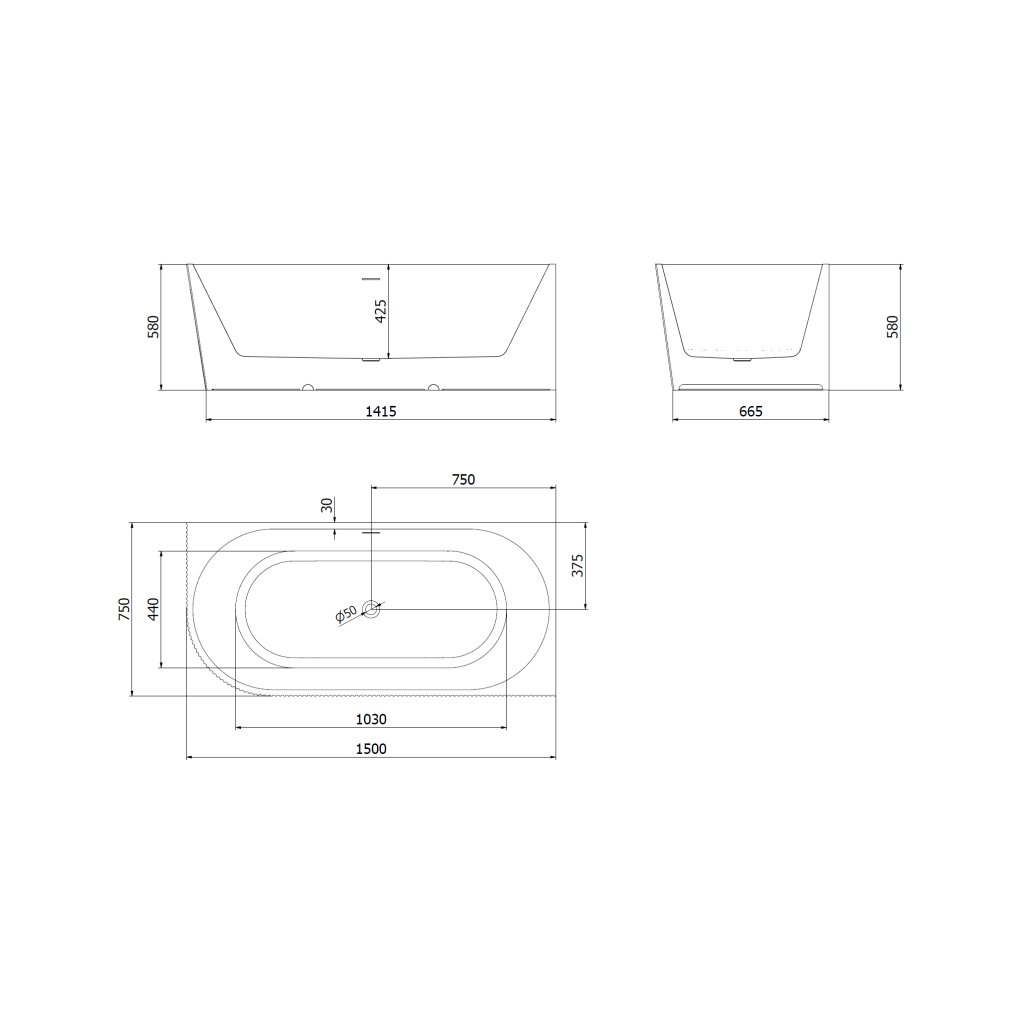 Mexen Silo, rohová volně stojící rýhovaná vana, pravá, 150 x 75 cm, bílá-černá, černý matný přepad, 52891507575P-70