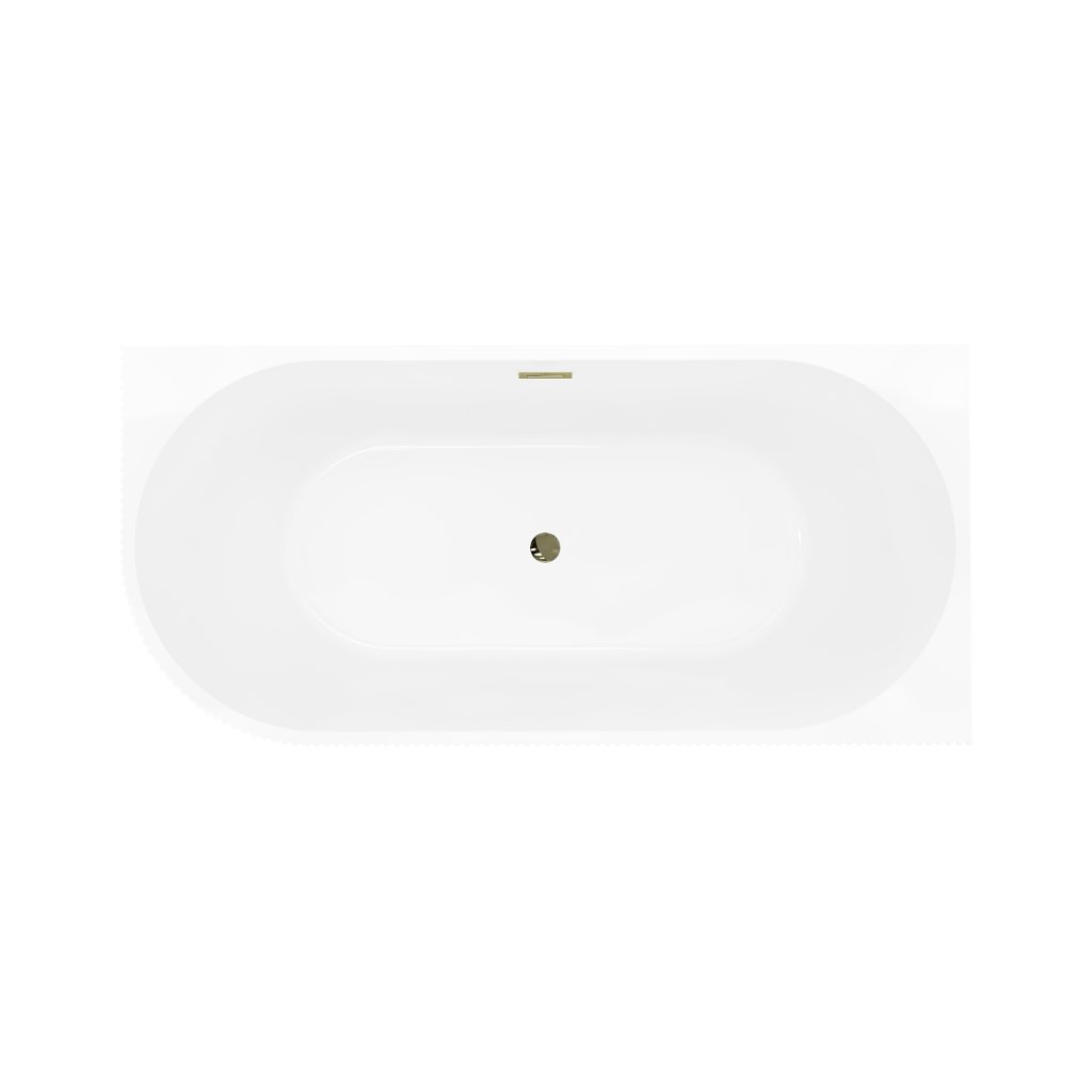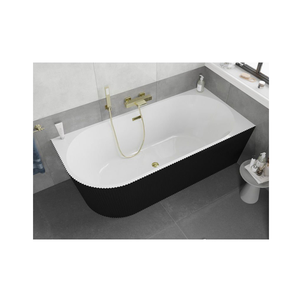 Mexen Silo, rohová volně stojící rýhovaná vana, pravá, 150 x 75 cm, bílá-černá, zlatý lesklý přepad, 52891507575P-50