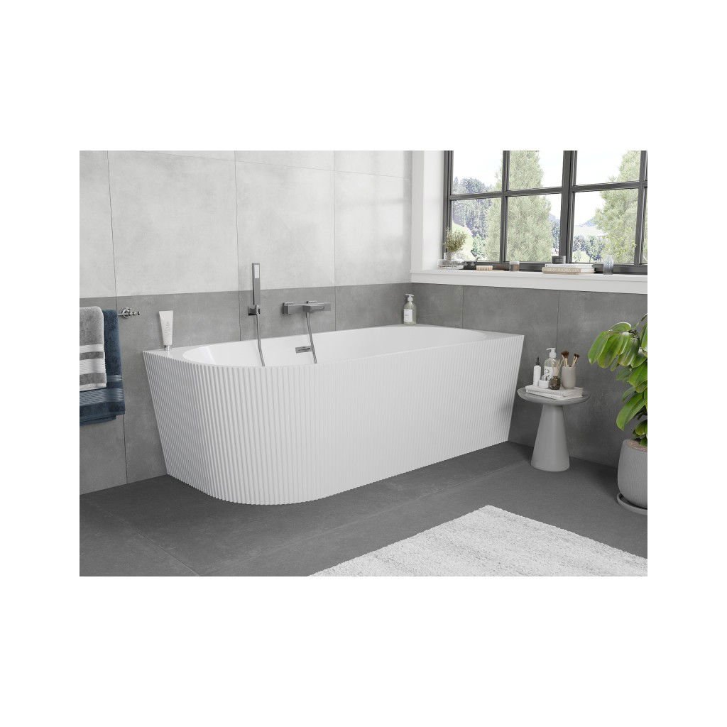 Mexen Silo, rohová volně stojící rýhovaná vana, pravá, 150 x 75 cm, bílá lesklá, grafitový přepad, 52891507500P-95