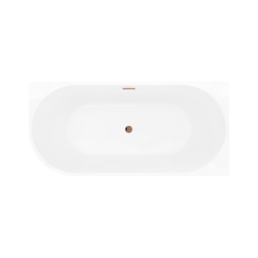 Mexen Silo, rohová volně stojící rýhovaná vana, pravá, 150 x 75 cm, bílá lesklá, růžové zlato přepad, 52891507500P-60