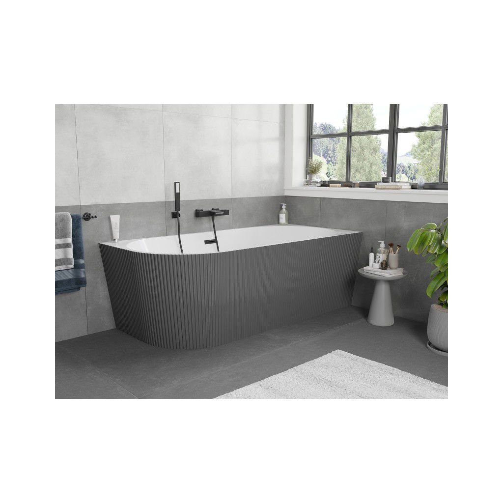 Mexen Silo, rohová volně stojící rýhovaná vana, pravá, 150 x 75 cm, bílá-šedá, černý matný přepad, 52891507562P-70