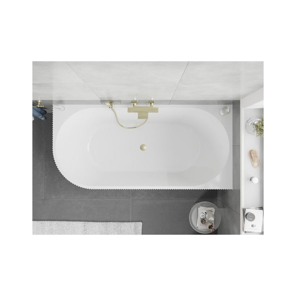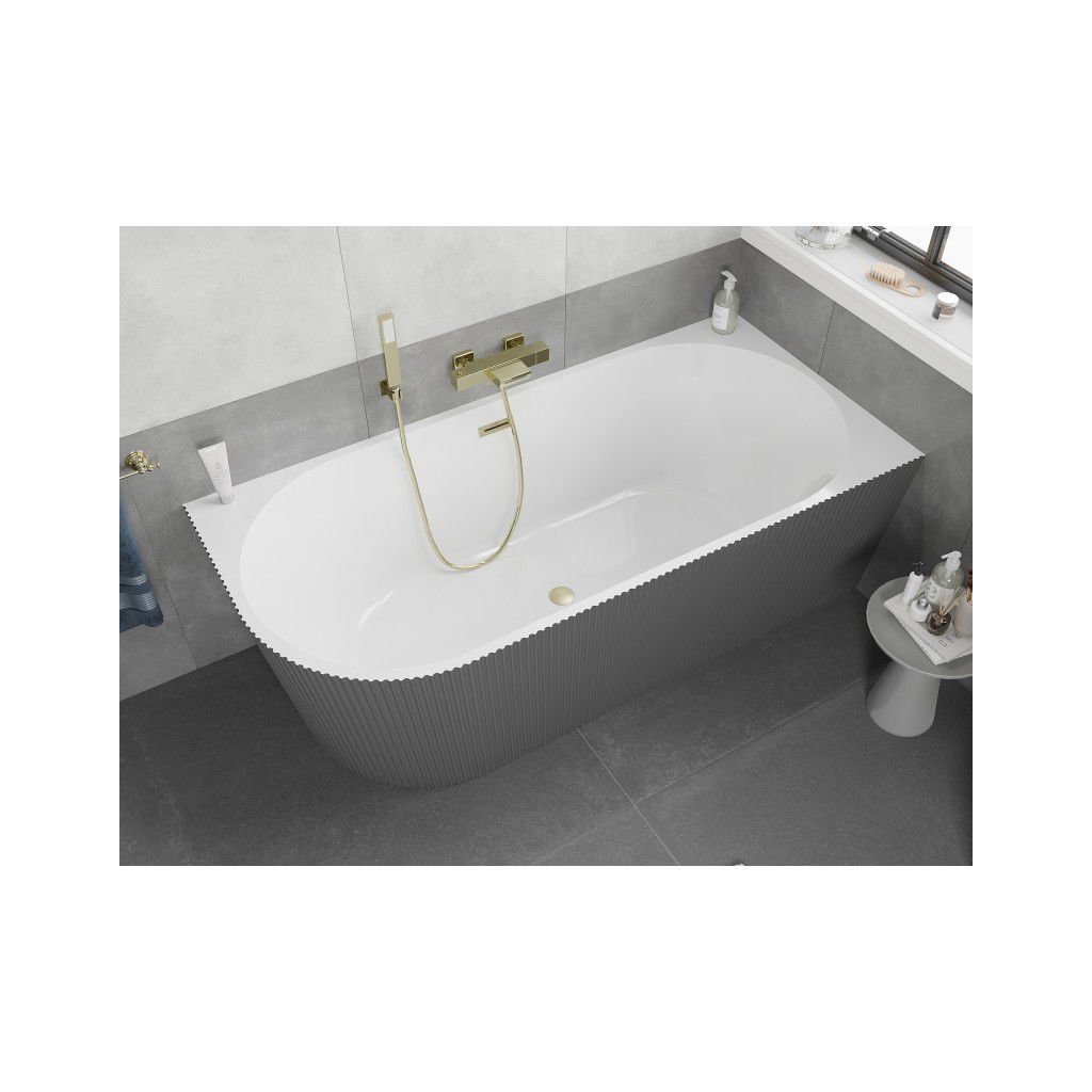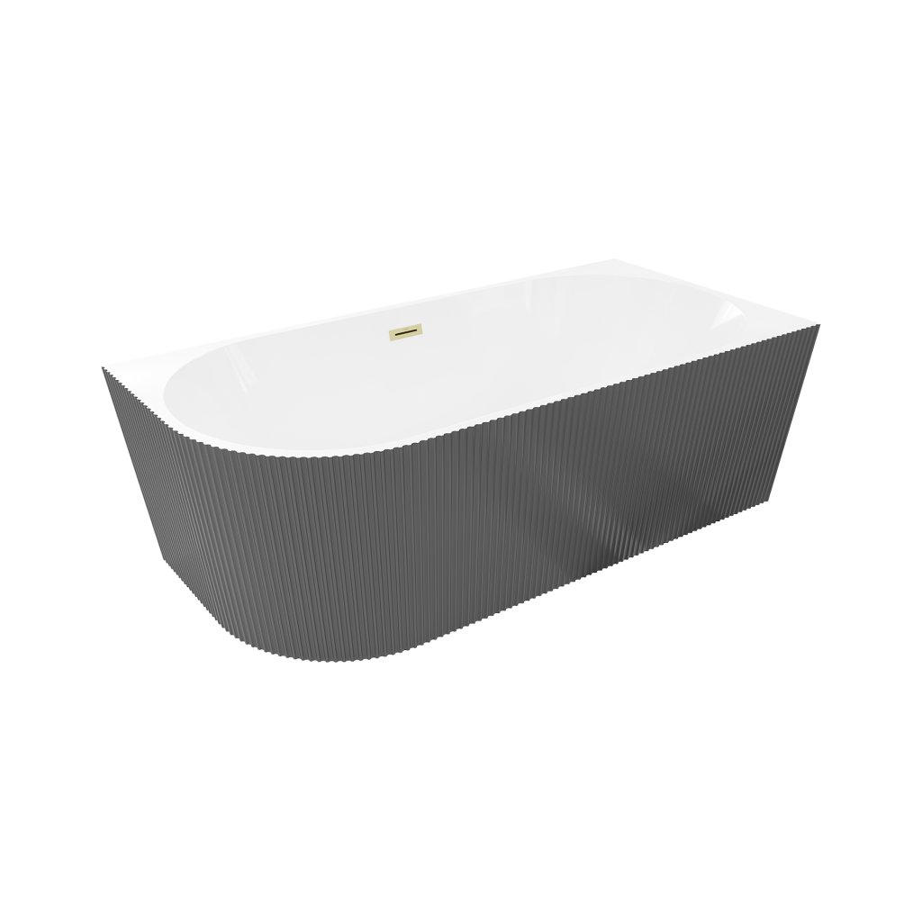 Mexen Silo, rohová volně stojící rýhovaná vana, pravá, 150 x 75 cm, bílá-šedá, zlatý matný přepad, 52891507562P-55