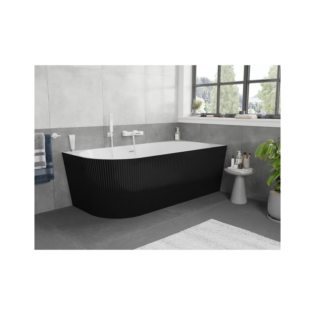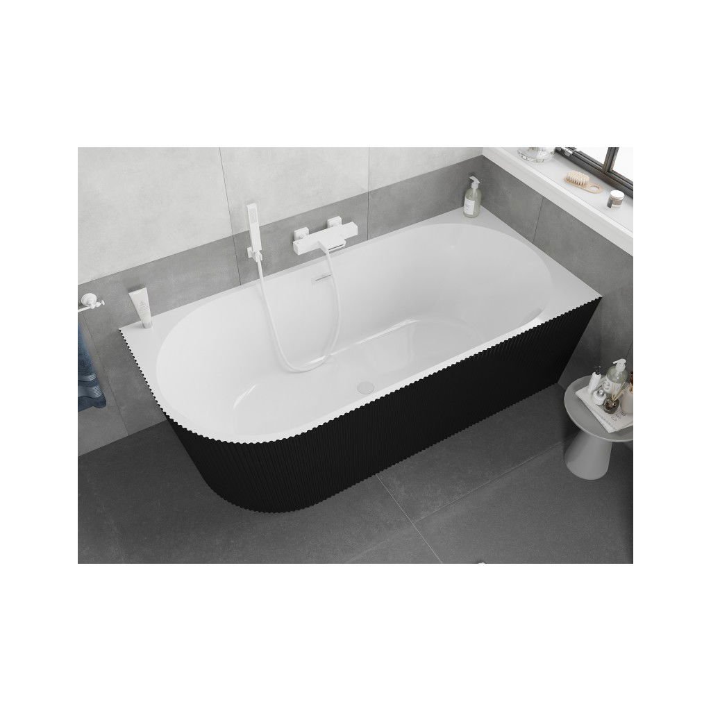 Mexen Silo, rohová volně stojící rýhovaná vana, pravá, 170 x 80 cm, bílá-černá, bílý přepad, 52891708075P-20