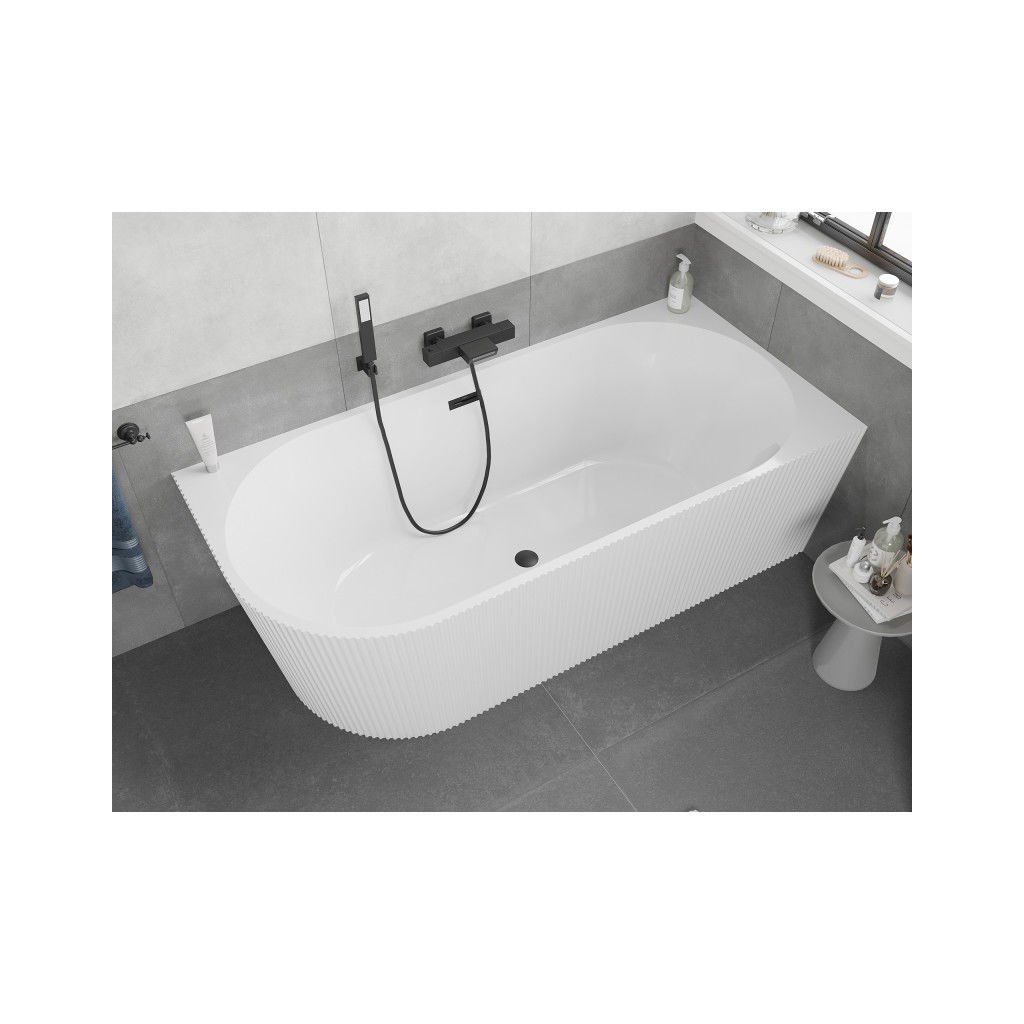 Mexen Silo, rohová volně stojící rýhovaná vana, pravá, 170 x 80 cm, bílá lesklá, černý matný přepad, 52891708000P-70