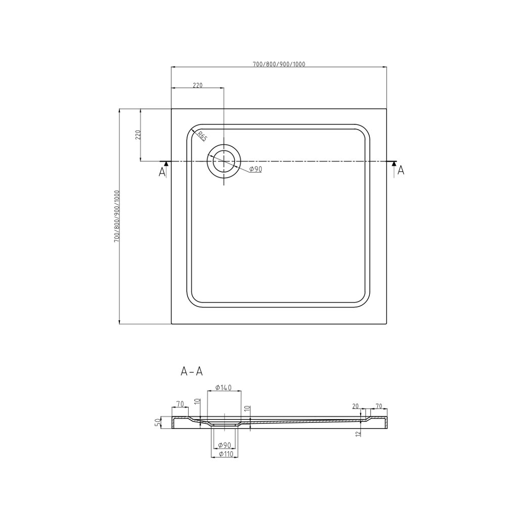 Mexen SLIM - Čtvercová sprchová vanička 70x70x5cm + černý sifon, bílá, 40107070B