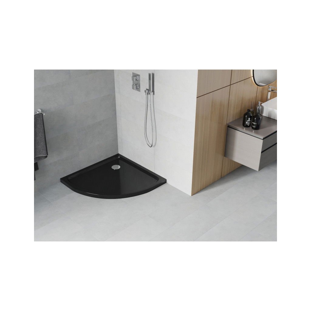 MEXEN SLIM - Čtvrtkruhová sprchová vanička 70x70 cm + sifon, černá, 41707070