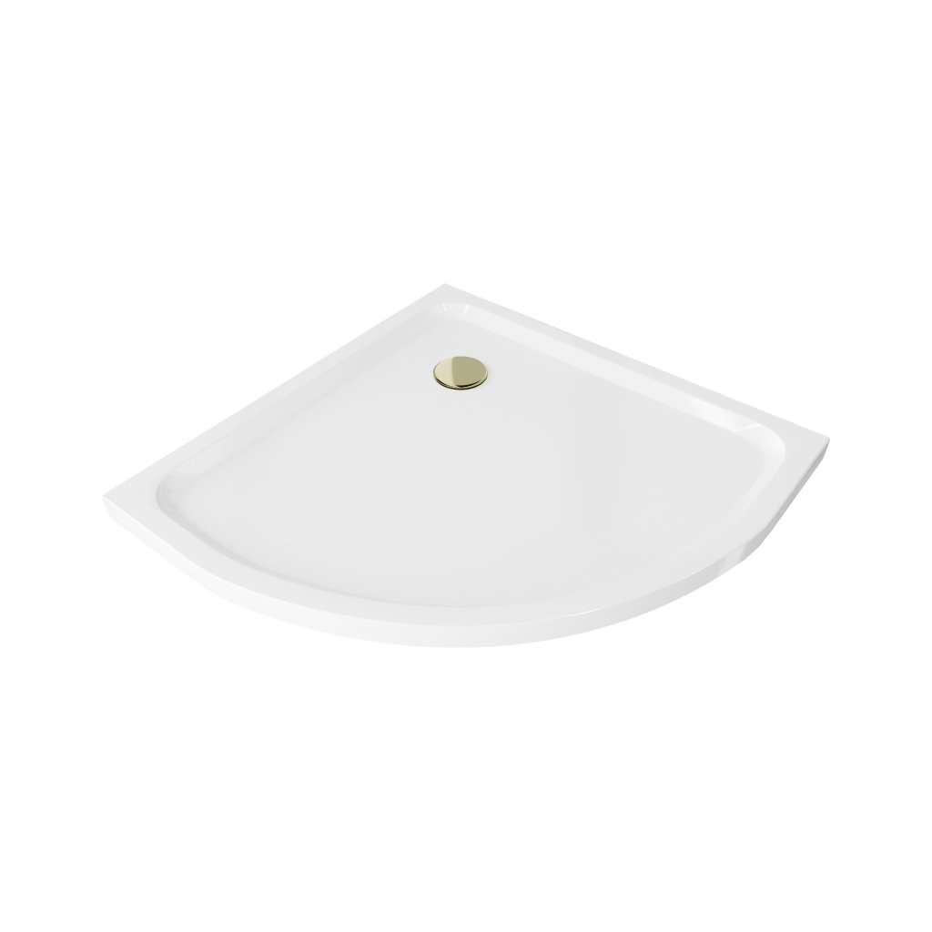 Mexen SLIM - Čtvrtkruhová sprchová vanička 80x80x5cm + zlatý sifon, bílá, 41108080G