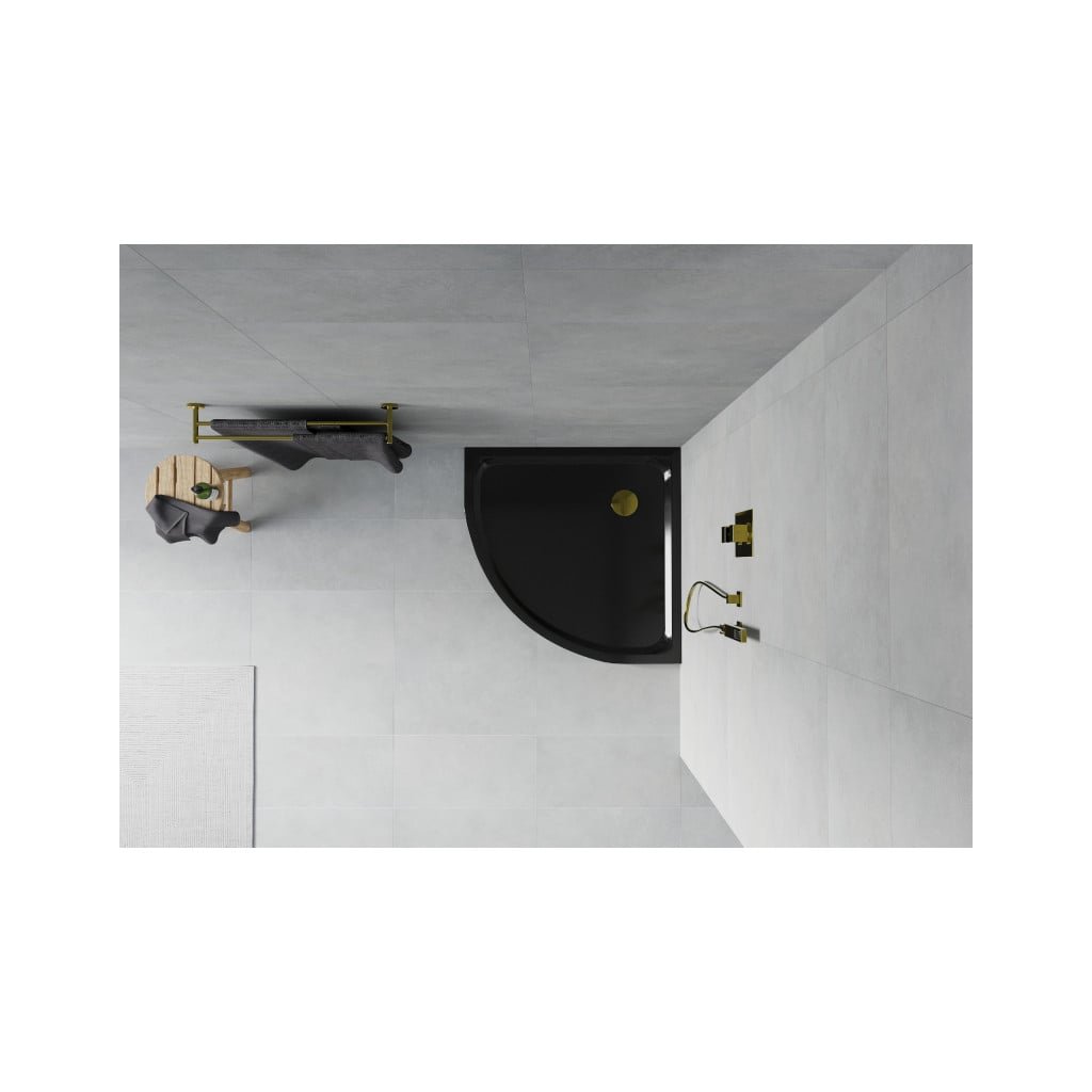 Mexen SLIM - Čtvrtkruhová sprchová vanička 90x90x5cm + zlatý sifon, černá, 41709090G