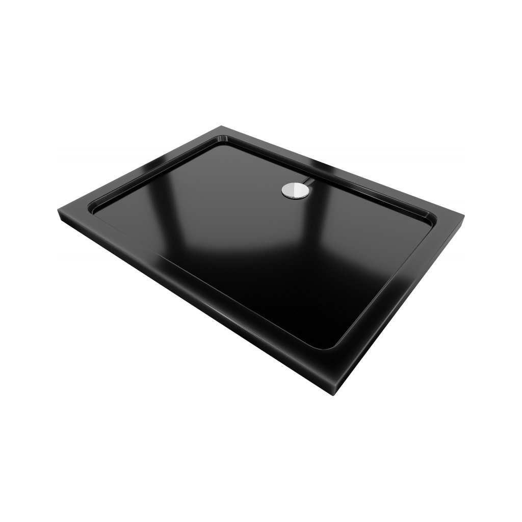 Mexen SLIM - Obdélníková sprchová vanička 130x100x5cm + chromový sifon, černá, 40701013