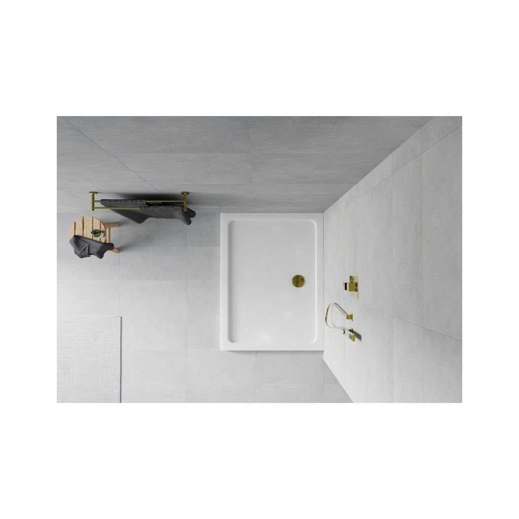 Mexen SLIM - Obdélníková sprchová vanička 140x90x5cm + zlatý sifon, bílá, 40109014G