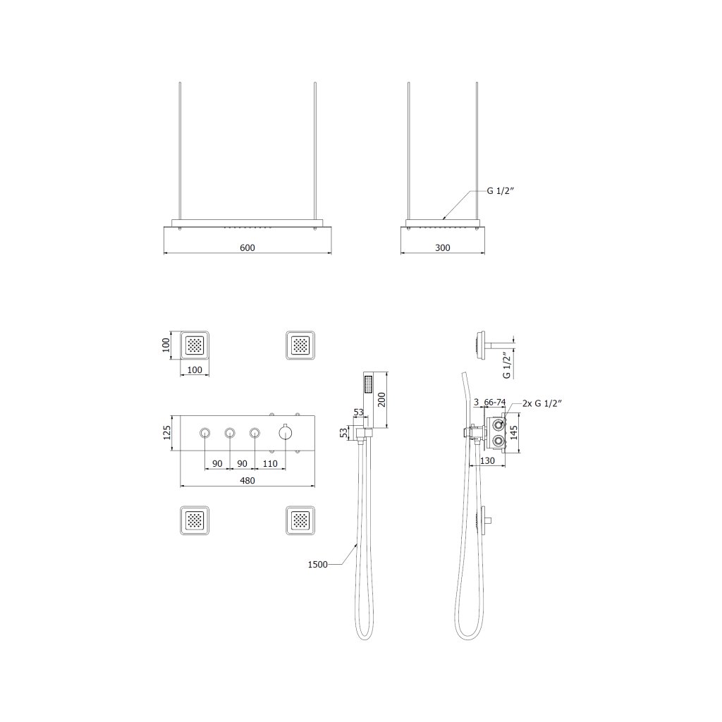 - Dešťová sprcha s deštěm a kaskádovým proudem