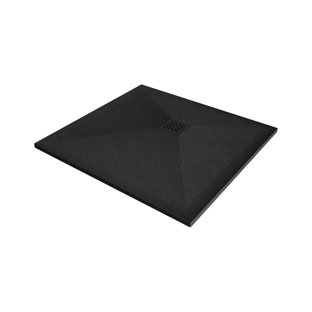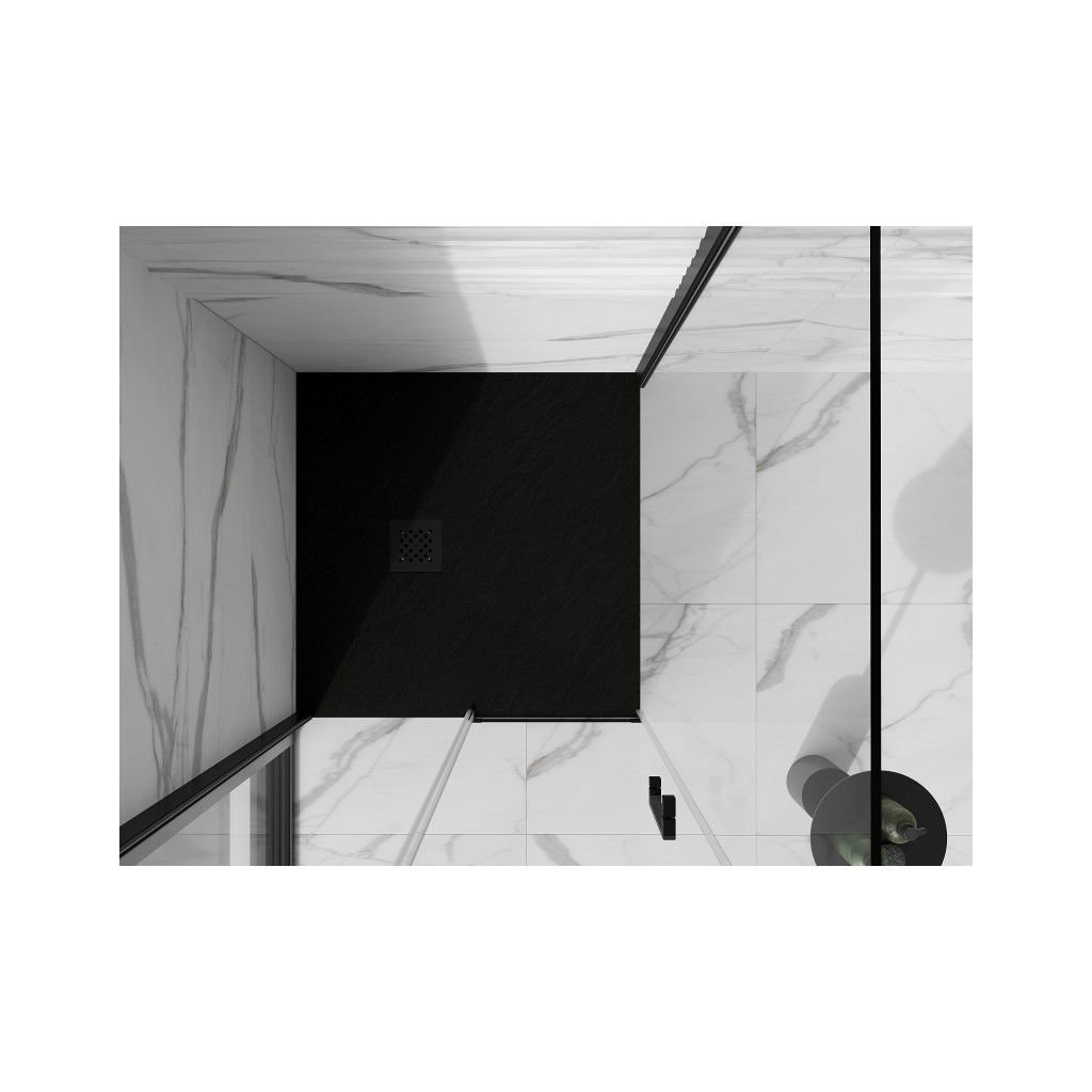 Mexen Stone+, čtvercová vanička z minerálního kompozitu 100 x 100 cm, černá, černá krytka, 44701010-B