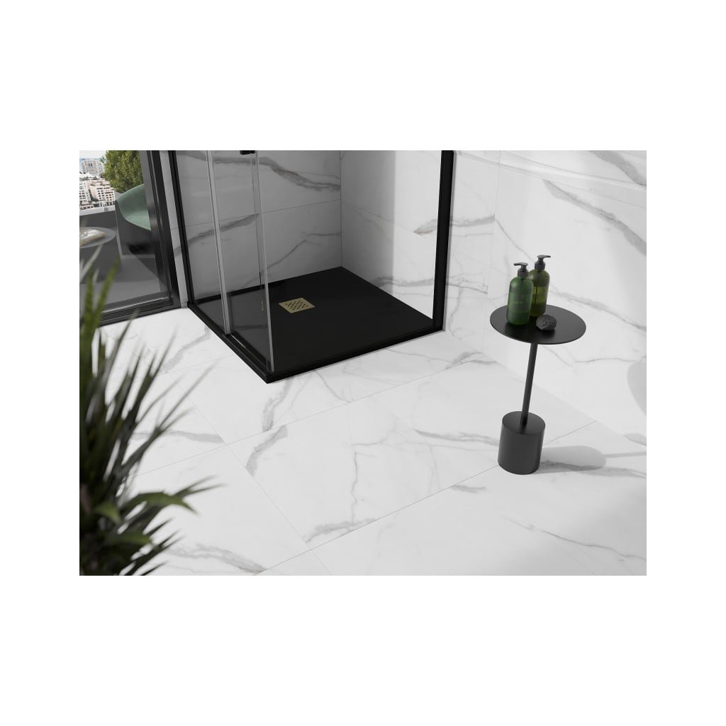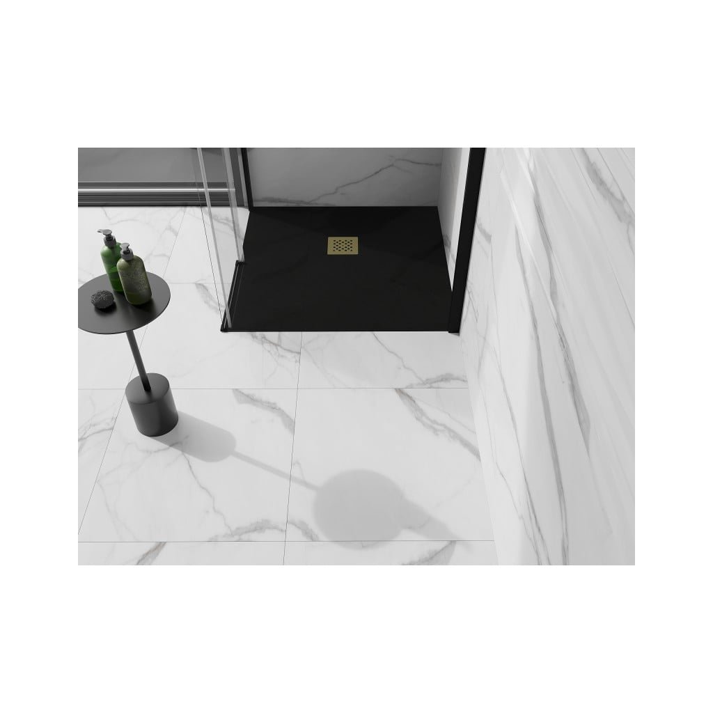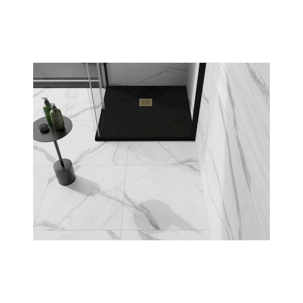 Mexen Stone+, čtvercová vanička z minerálního kompozitu 100 x 100 cm, černá, zlatá lesklá krytka, 44701010-G