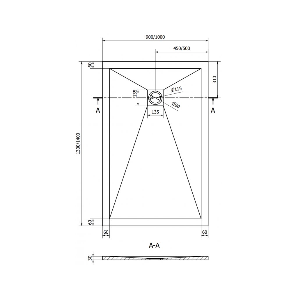 - Průměr odtoku: 90 mm