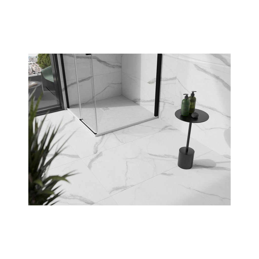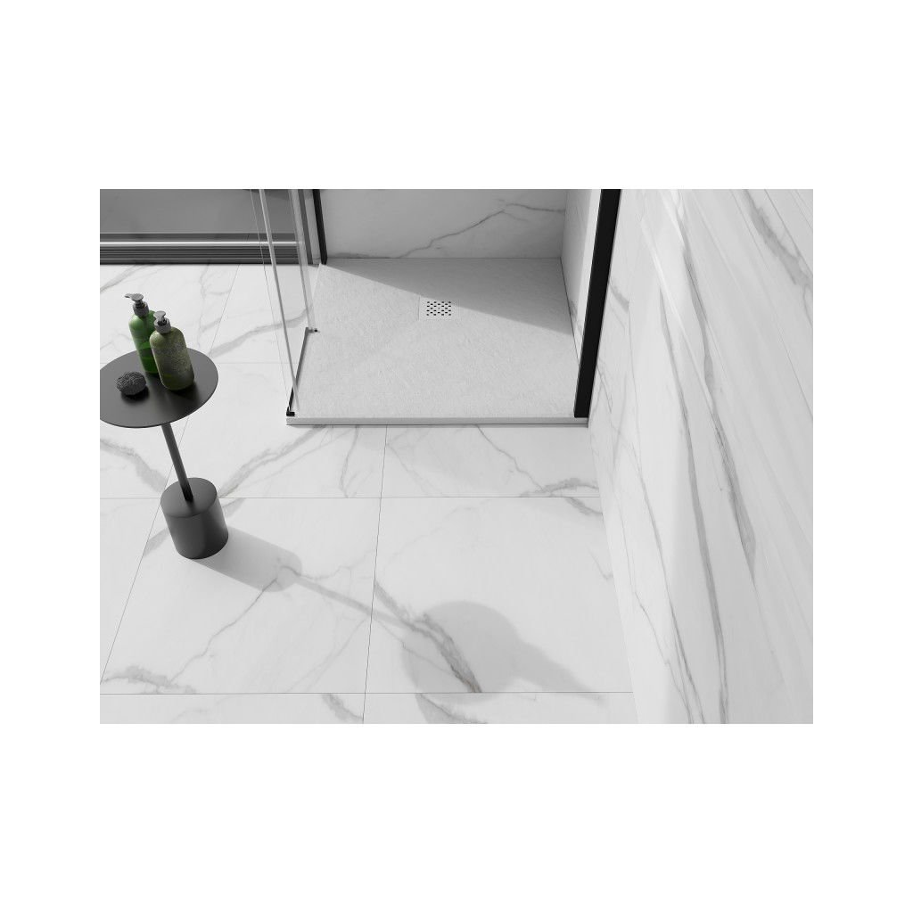 Mexen Stone+, čtvercová vanička z minerálního kompozitu 90 x 90 cm, bílá, bílá krytka, 44109090-W