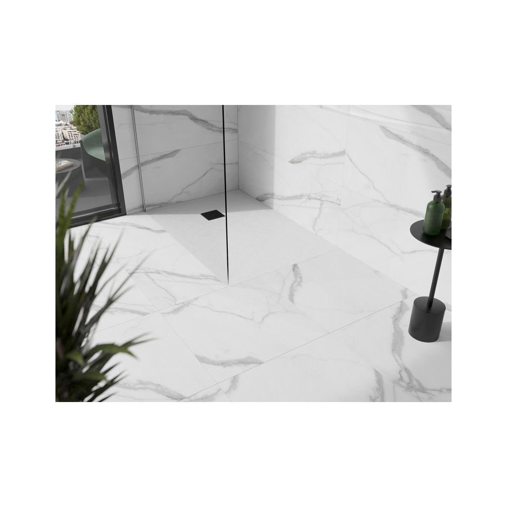 Mexen Stone+, obdélníková vanička z minerálního kompozitu 100 x 80 cm, bílá, černá krytka, 44108010-B