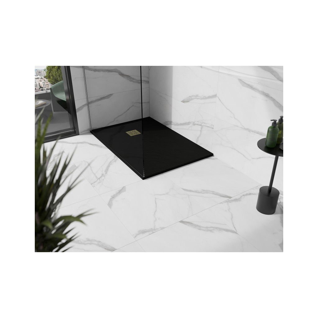 Mexen Stone+, obdélníková vanička z minerálního kompozitu 100 x 90 cm, černá, zlatá lesklá krytka, 44709010-G