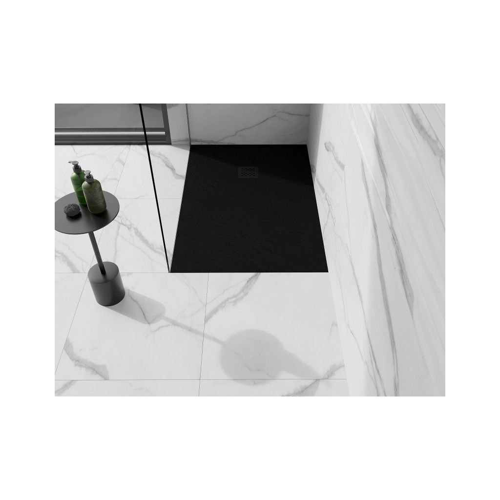 Mexen Stone+, obdélníková vanička z minerálního kompozitu 140 x 100 cm, černá, černá krytka, 44701014-B