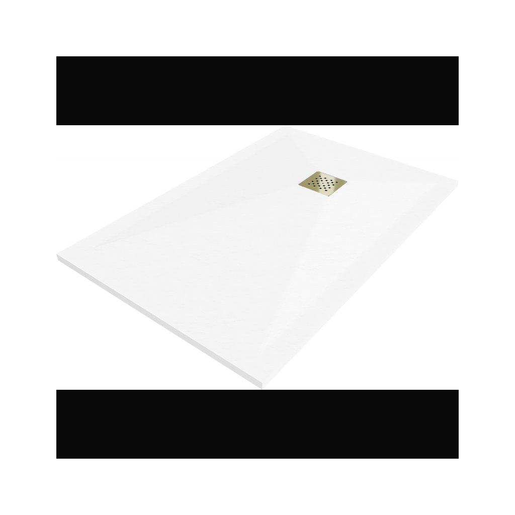 Mexen Stone+, obdélníková vanička z minerálního kompozitu 140 x 80 cm, bílá, zlatá lesklá krytka, 44108014-G