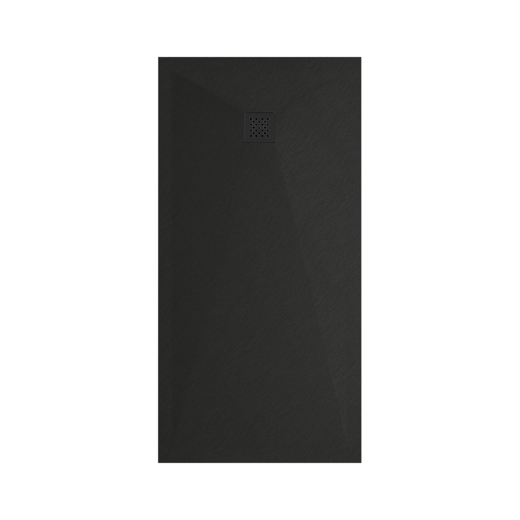 Mexen Stone+, obdélníková vanička z minerálního kompozitu 180 x 100 cm, černá, černá krytka, 44701018-B