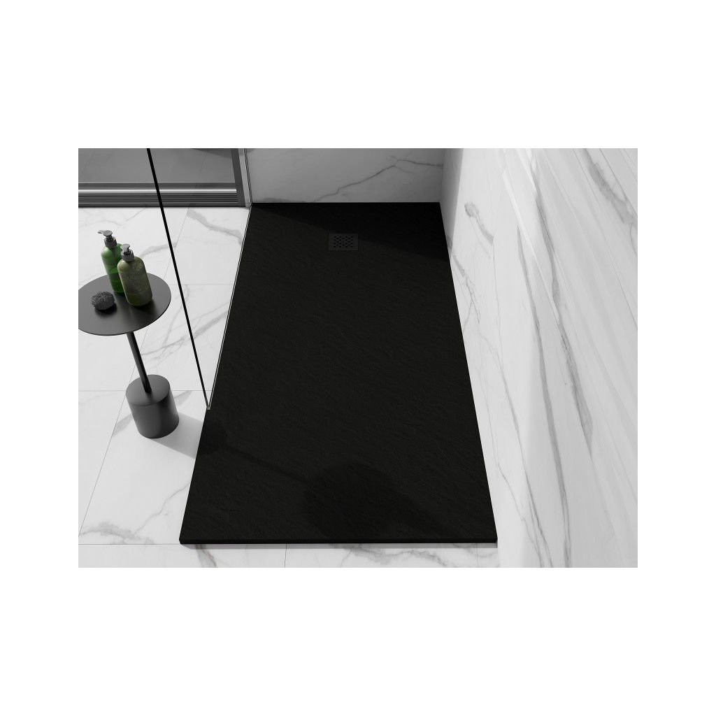 Mexen Stone+, obdélníková vanička z minerálního kompozitu 180 x 80 cm, černá, černá krytka, 44708018-B