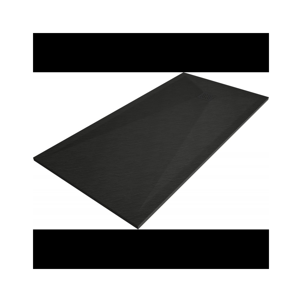 Mexen Stone+, obdélníková vanička z minerálního kompozitu 200 x 90 cm, černá, černá krytka, 44709020-B