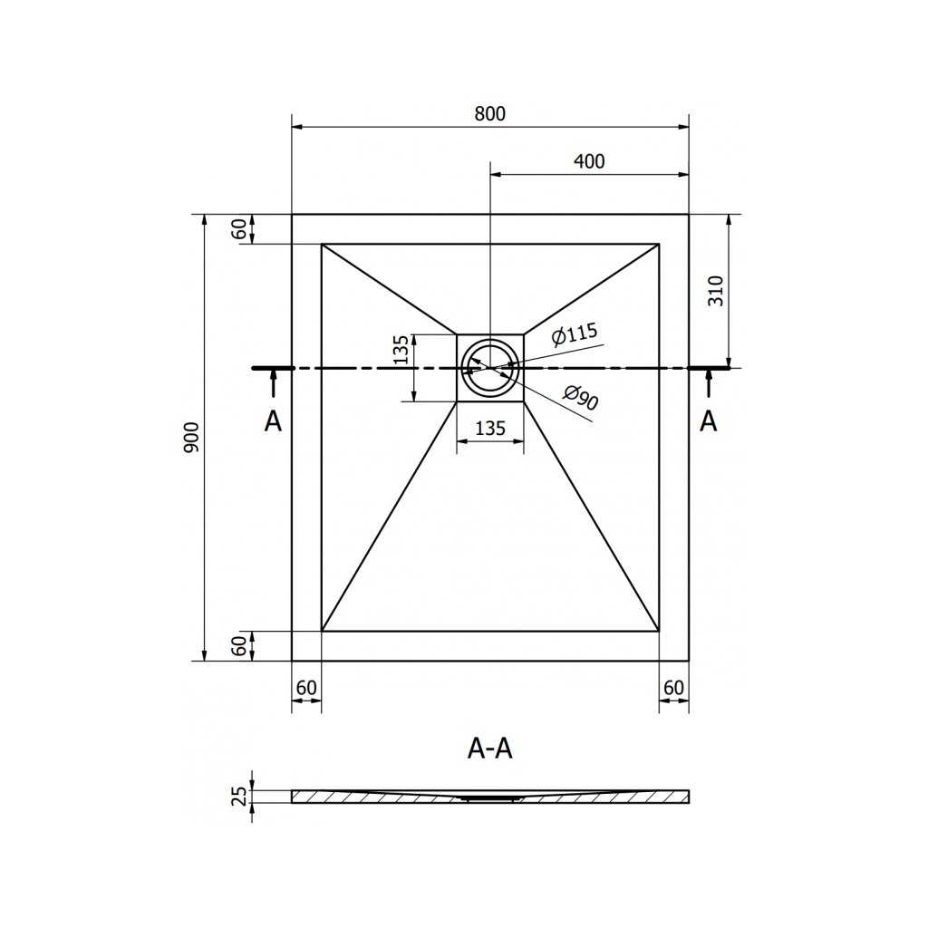 Mexen Stone+, obdélníková vanička z minerálního kompozitu 90 x 80 cm, černá, černá krytka, 44708090-B
