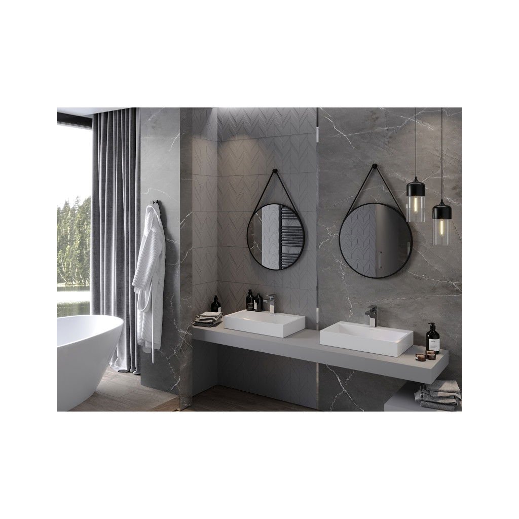 Mexen String, kulaté koupelnové zrcadlo na pásku 60 cm, barva rámu černá matná, 9854-060-060-000-70