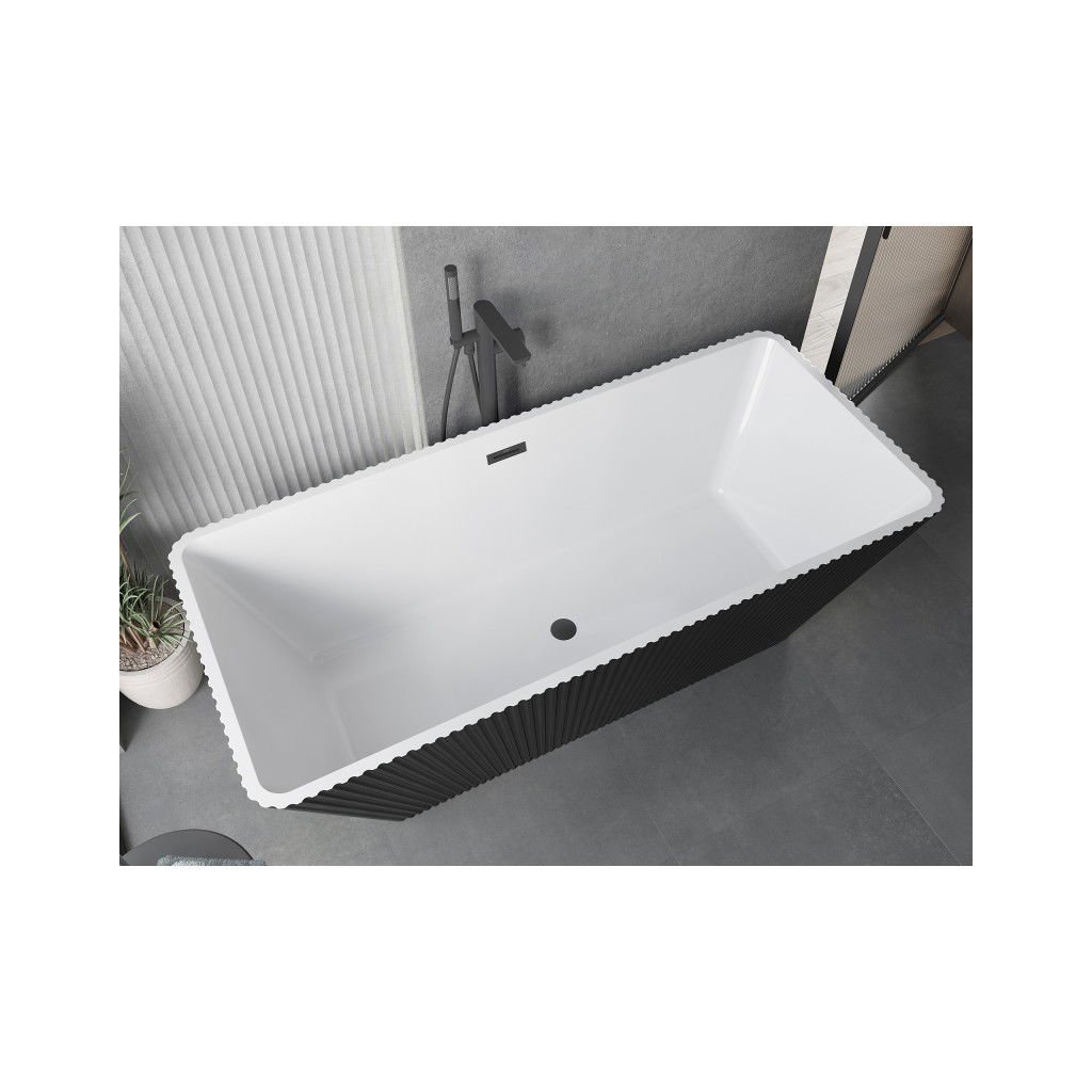 Mexen Tava, volně stojící rýhovaná vana 170 x 75 cm, bílá-černá, černý matný přepad, 52851707575-70