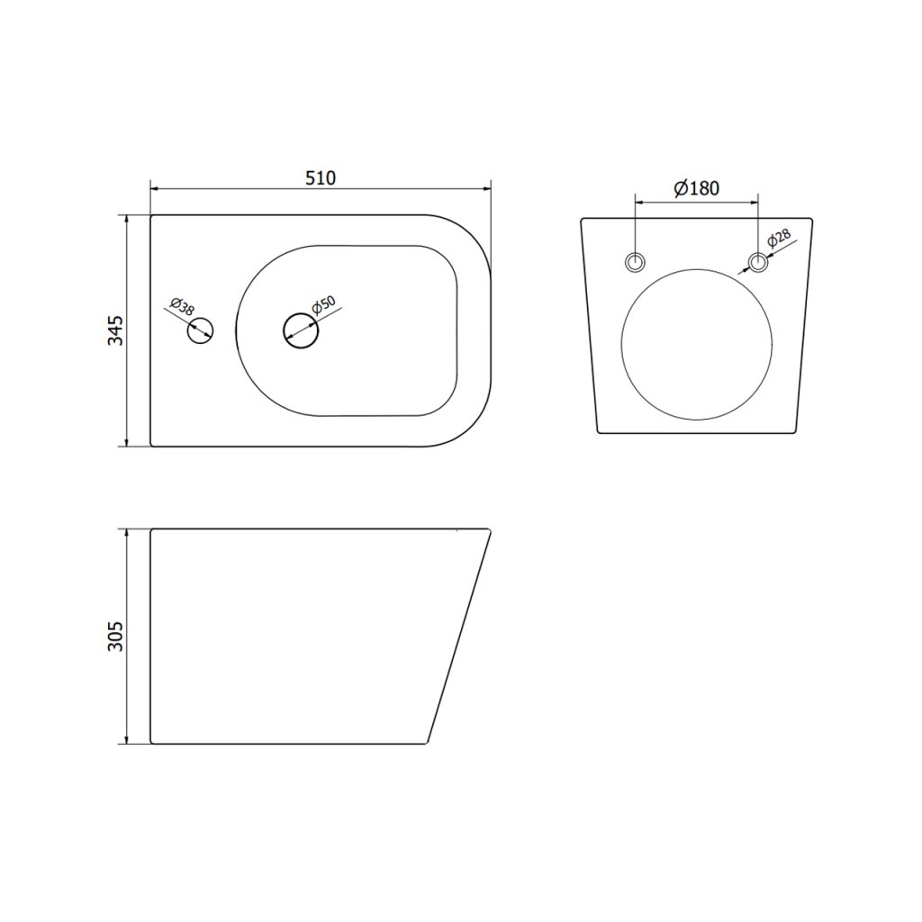 MEXEN TEO, závěsný bidet, 51 x 35 cm, černá matná, 35855185