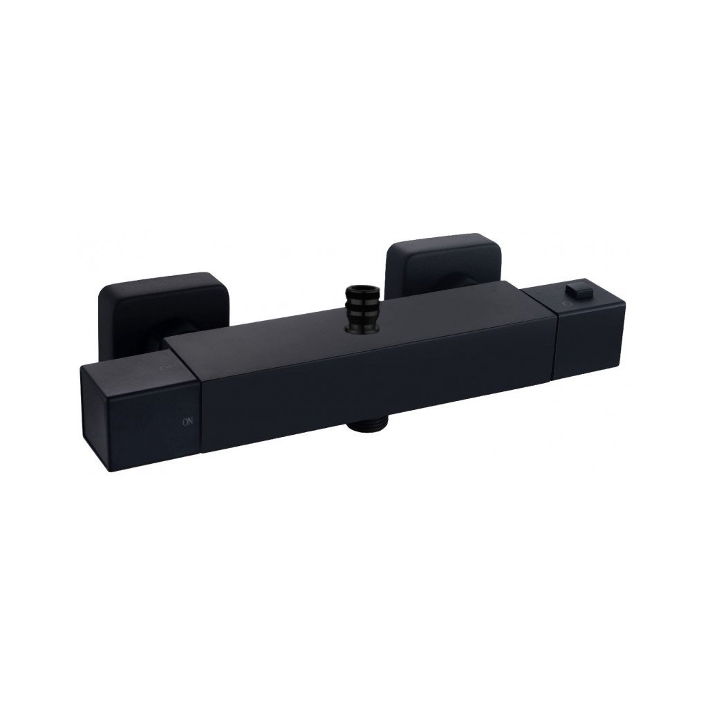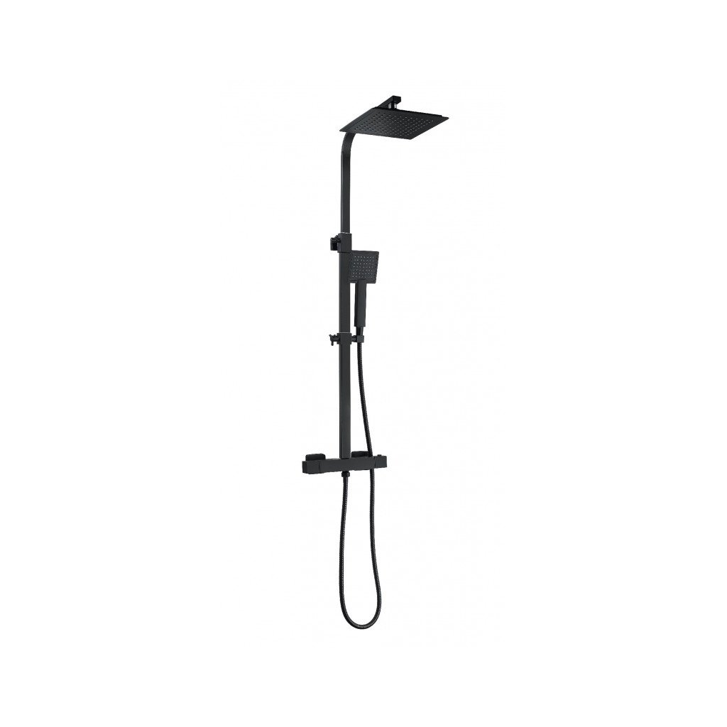 Mexen Tim Sprchový set s termostatickou sprchovou baterií s horním uchycením Cube, černý, 3/4" + 1/2", 78910-70 + 77250-70