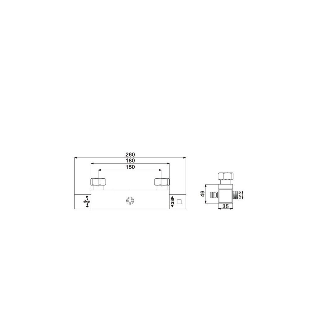 - Připojení: G3/4" (horní pro sprchový sloup), G1/2" (spodní pro ruční sprchu)