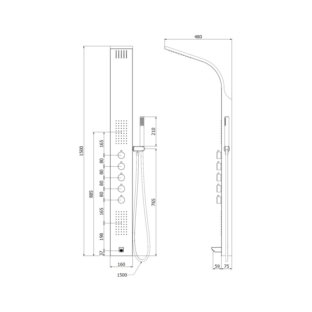 Mexen Timor, sprchový panel s výlevkou, černá matná, 7621-04-70