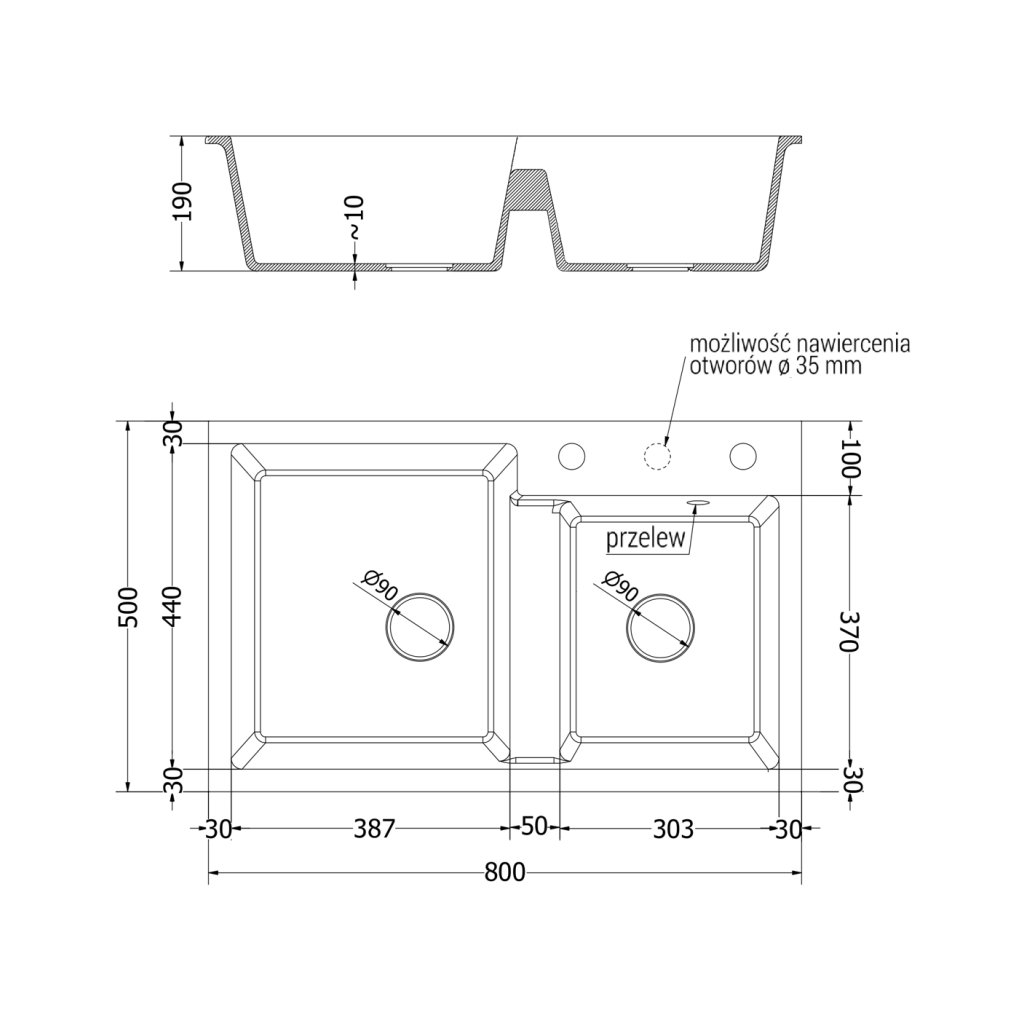 - Odtokový otvor: 3,5 ”; fi = 90 mm