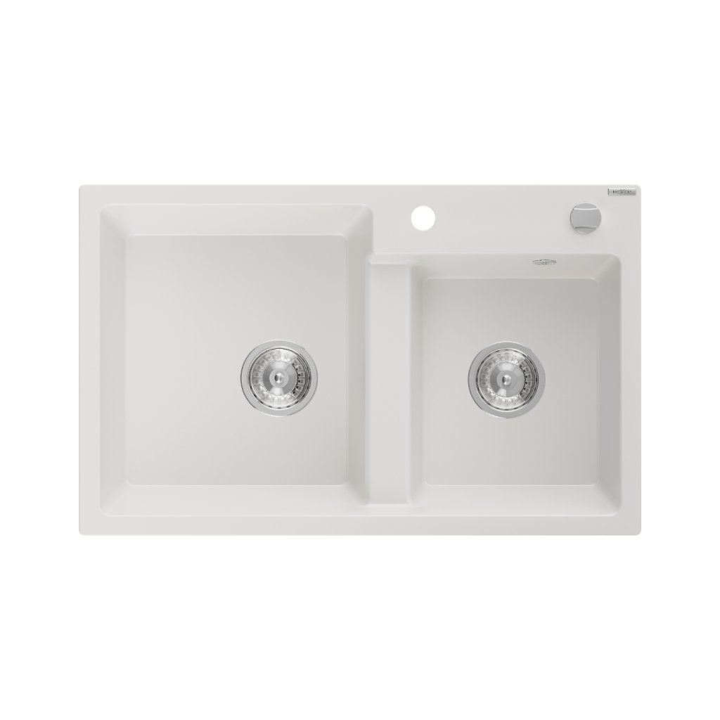 Mexen Tomas, granitový dřez 800x500x190 mm, 2-komorový, bílá, 6516802000-20